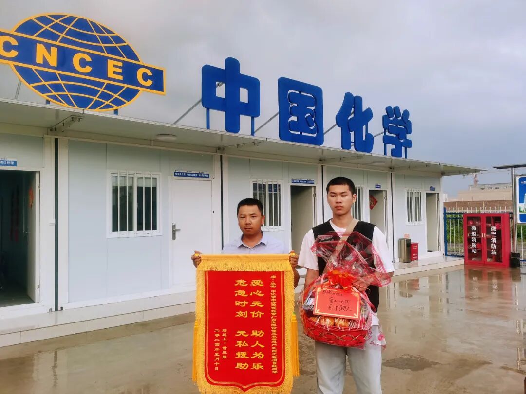 “真的太感謝你們了,多虧了你們伸手相助,才救了我爺爺?shù)男悦 ?月11日,謝大爺?shù)膶O子謝玉勝及其家人,一同前往中國(guó)化學(xué)所屬南方建投廣西公司玉林香料園項(xiàng)目部,向項(xiàng)目青年員工扶浩送上了“愛(ài)心無(wú)價(jià),助人為樂(lè),危急時(shí)刻,無(wú)私援助”的錦旗,并表達(dá)了誠(chéng)摯感謝。